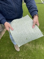 "En platt yta som en fotbollsplan genererar oftast väldigt lite restmaterial vid montering, så där kan vi vara mycket precisa i måtten. För lekplatser med mer komplexa ytor, som till exempel kullar, blir det lite mer spill, men det tar vi alltid hand om. Vi testar nu även att ta fram kringutrustning som konor av det material som blir över," säger Erik Hedberg från Nordic Surface.